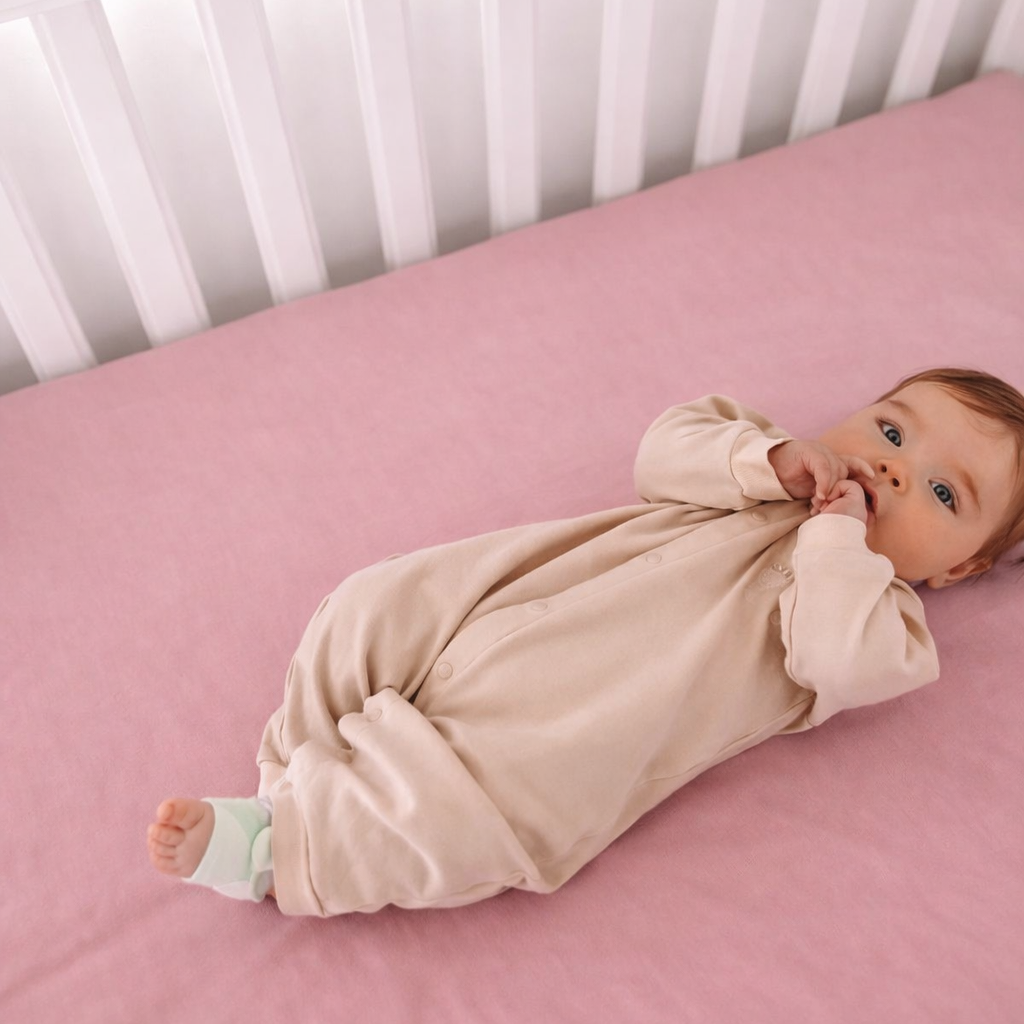 Thoughtfully sized to fit 130 × 69 cm and 132 × 70 cm cot mattresses, and available in calming sage green or soft dusty rose.